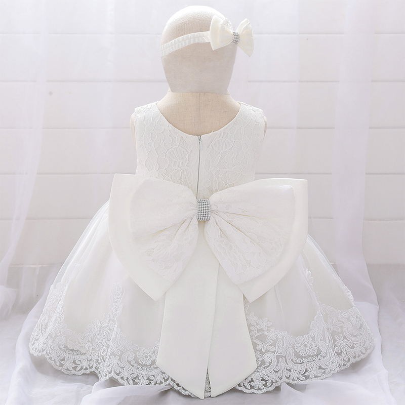 Baby Dresses For Girls With Headband 2 Years Birthday Baby Girl Christening Dress With Bow White Wedding Dress Baby Clothing Dresses Aliexpress